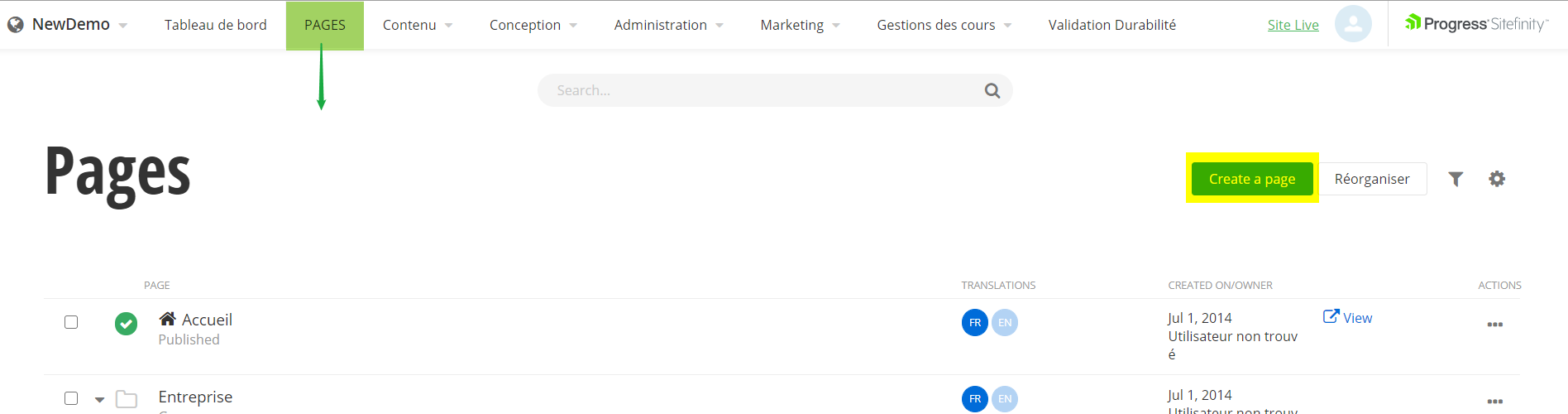 Seules les pages publiées sont visibles dans le Front Office de votre site.