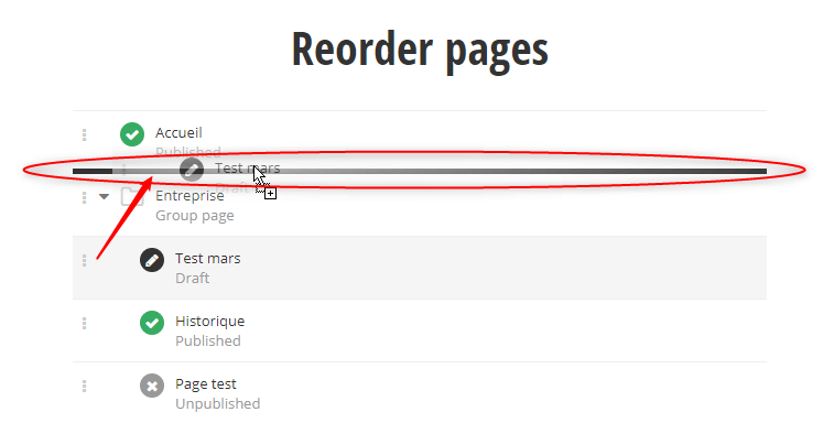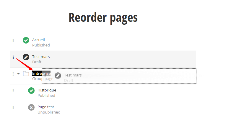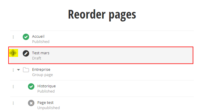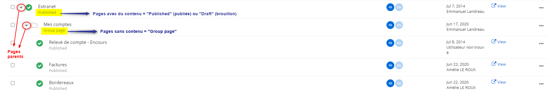 Les pages de votre site internet peuvent avoir plusieurs états : Publié ou Brouillon.