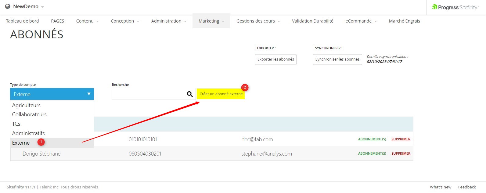 - Puis, cliquer sur “Synchroniser les abonnés”pour voir la modification dans le catalogue proposé.