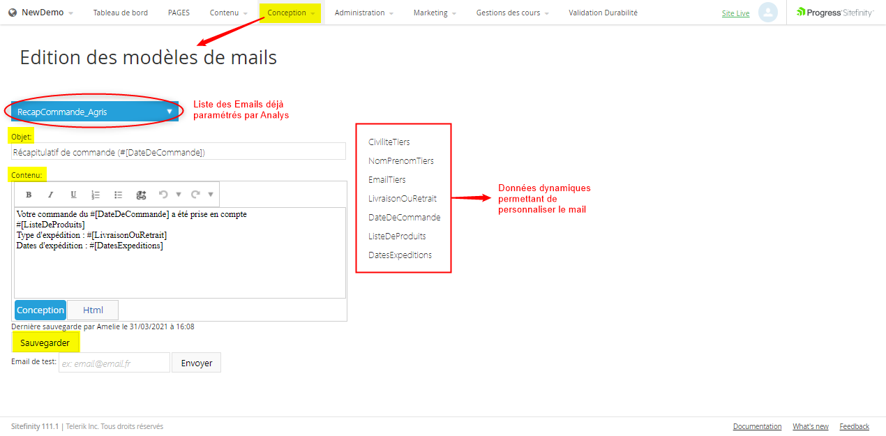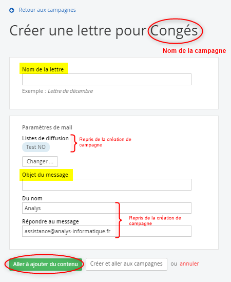 - Contenu : A renseigner. Correspond au corps de l'Email.