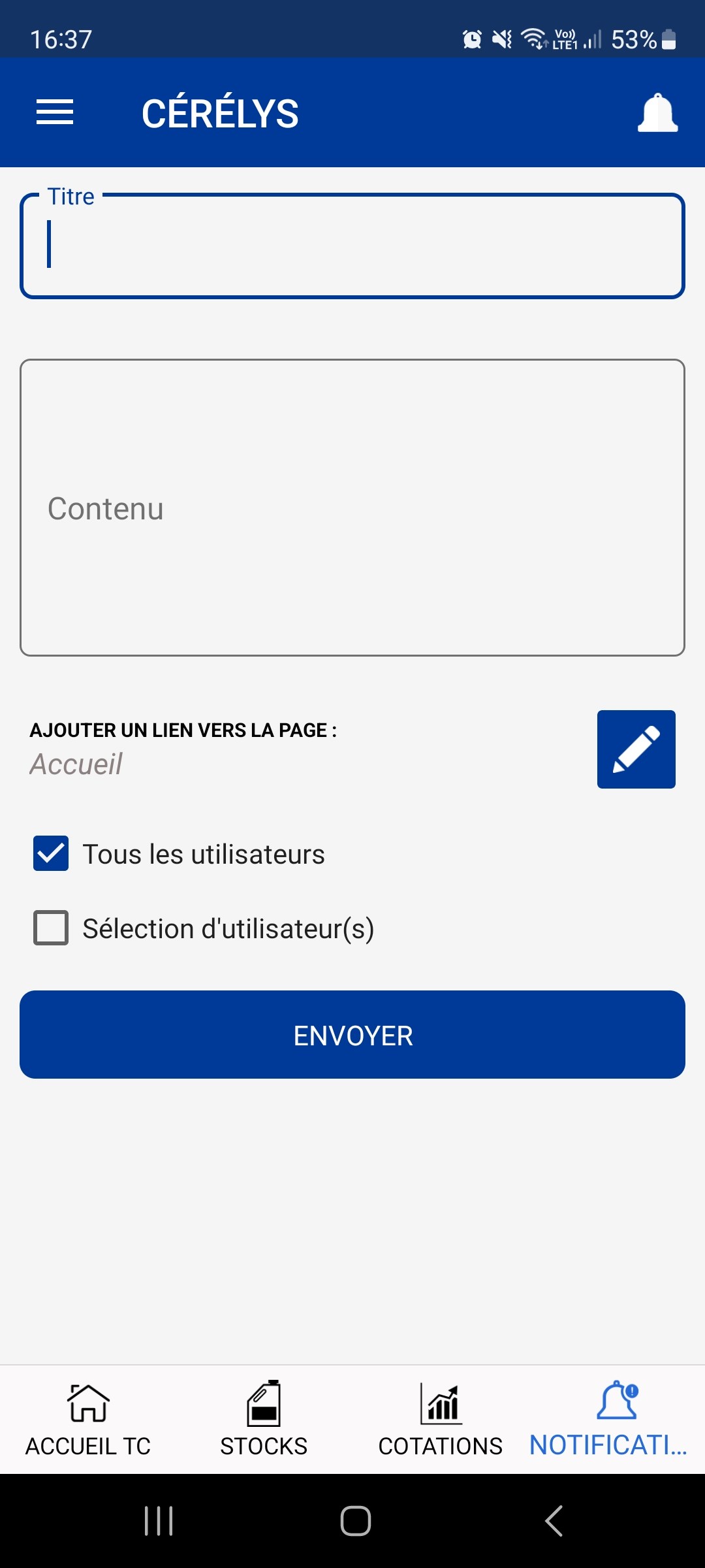 - Si Tout le monde sélectionné, l'envoi sera fait à tous ceux qui ont l'application mobile installée et l'accès aux notifications.