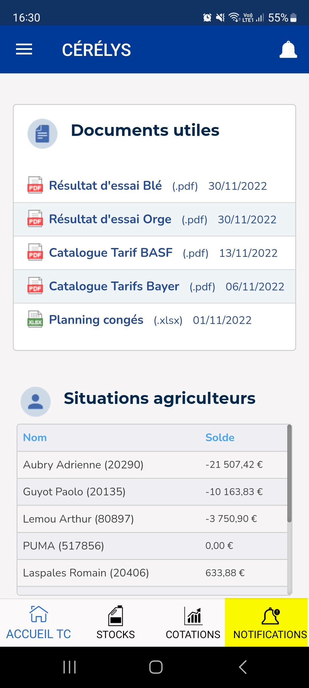 Sélectionner le type de compte (Agriculteurs, Administratifs, Collaborateurs, etc…) à afficher.