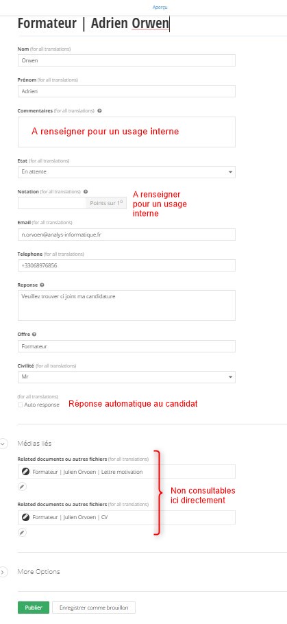 Vous pouvez, par cette fonctionnalité, gérer les candidatures reçues depuis votre site.