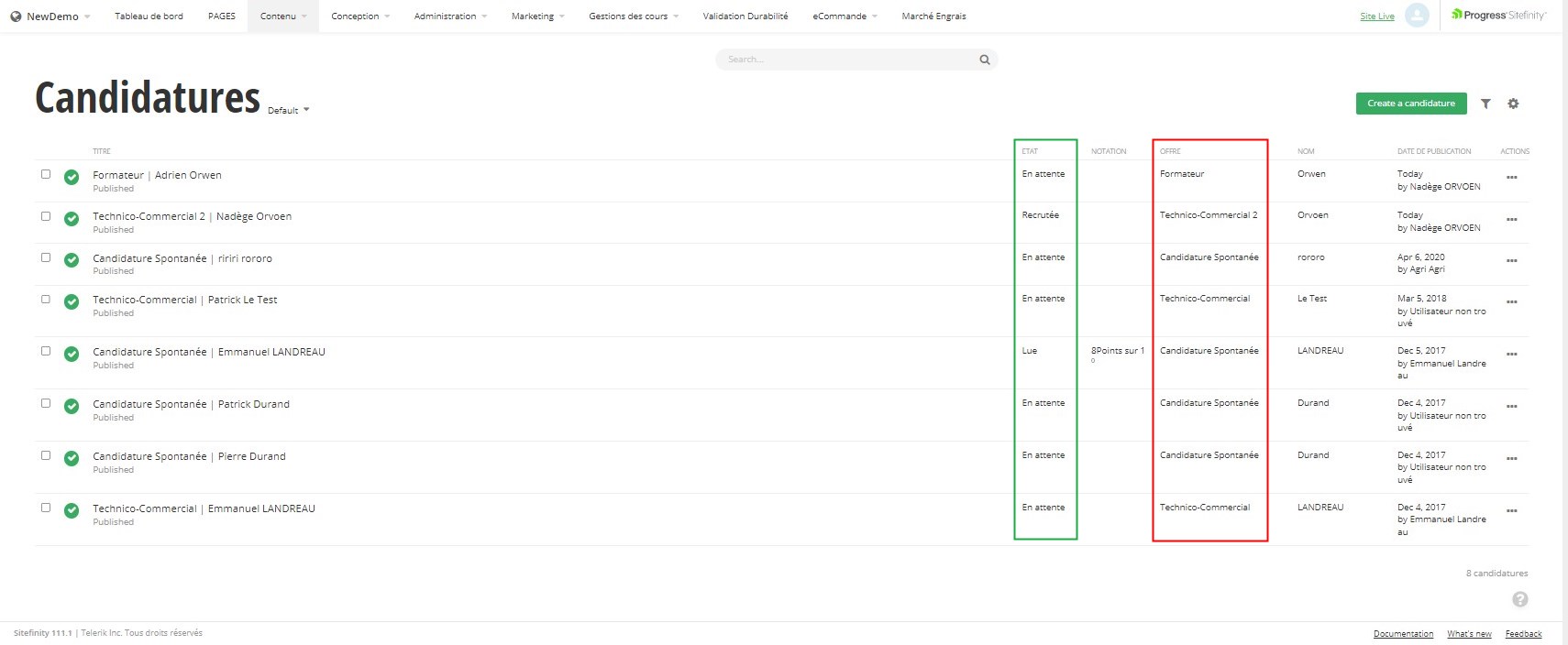 Contenu -> Candidatures