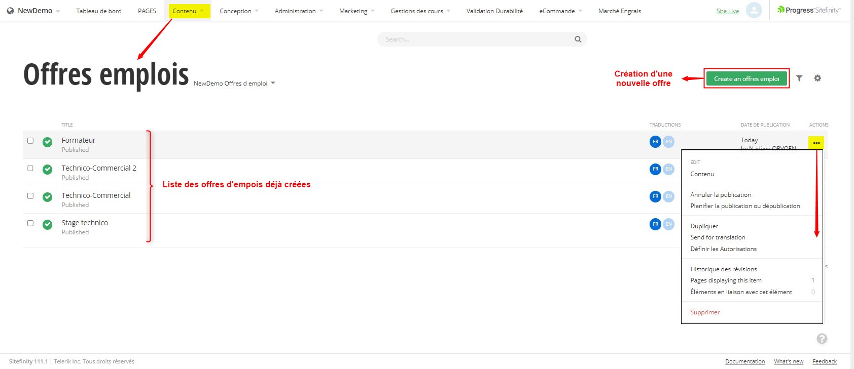 Contenu -> Offres d'emplois