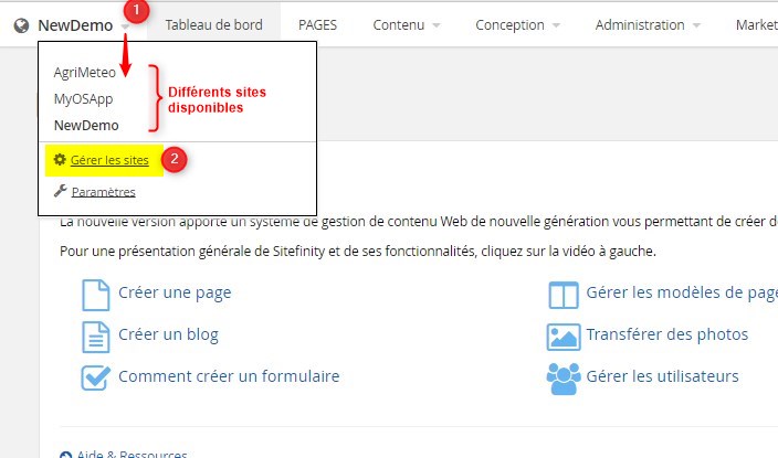 - Sélectionner “Gérer les sites”.