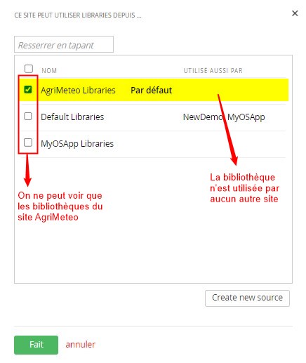 Chaque site voit toutes les librairies qui lui ont été autorisées.