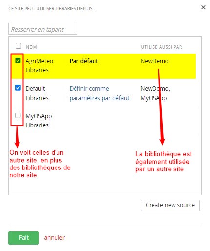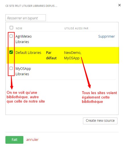 La colonne “Utilisé aussi par” indique les sites qui ont accès aux différentes librairies.